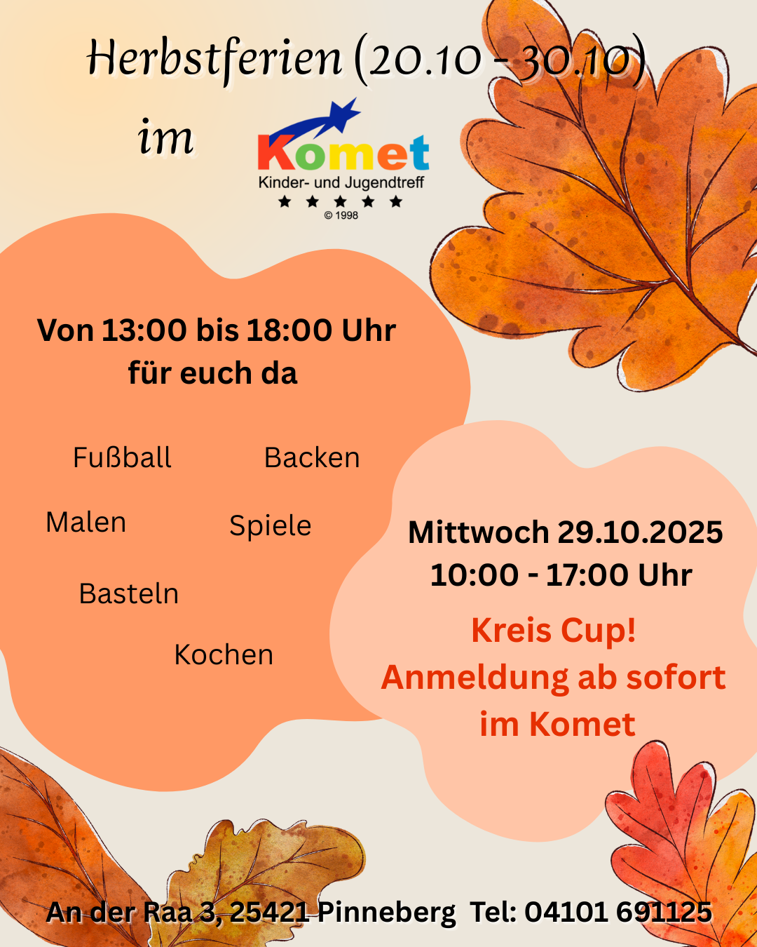 Im Herbst erwartet euch viel Spaß, Spiele und Freude im Kinder- und Jugendtreff Komet! Pinneberg,[…]
